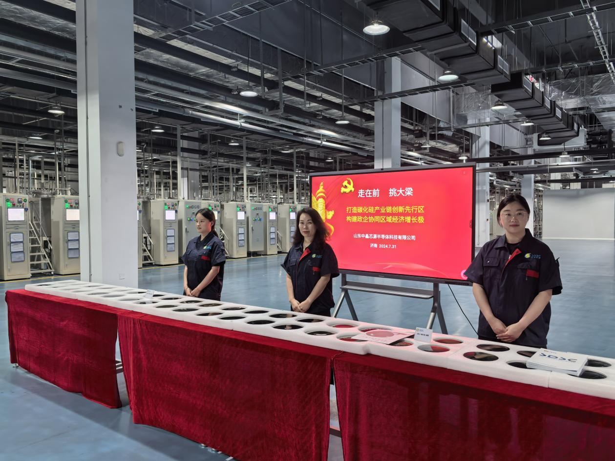 2024年7月31日,山东省委书记林武莅临南砂晶圆全资子公司中晶芯源,视察公司8英寸碳化硅北方基地项目。省委常委、济南市委书记刘强,省委常委、秘书长范波,省工信厅副厅长安文建,济南市工信局党组书记、局长魏斌,历城区委书记张军等省市区领导参加活动。南砂晶圆技术团队负责人、山东大学新一代半导体材料研究院院长、山东大学晶体材料国家重点实验室主任徐现刚教授带队迎接。